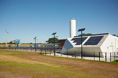 The project unfolded to encompass a diverse array of technologies. They include an ADA-compatible solar carport with (4) Level II EVSE components from four manufacturers, with provisions for DC quick-charge capabilities in the future, and a wide variety of roof and ground-mounted systems.