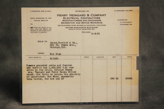Description: Electrical installation invoice from Henry Newgard and Company