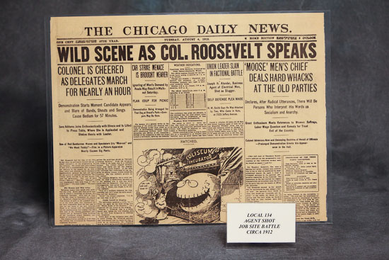 Description: Chicago Daily News about IBEW Local 134 Business Representative (Agent) shot at a job site.