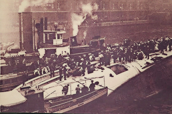 Description: Eastland Disaster on Chicago River. Early on the morning of Saturday, with a light rain falling and the air filled with much anticipation and excitement, thousands were gathering along the Chicago River… Read more about Local Union 134 member Tom Jones, one of the heroes of the Eastland Disaster. |