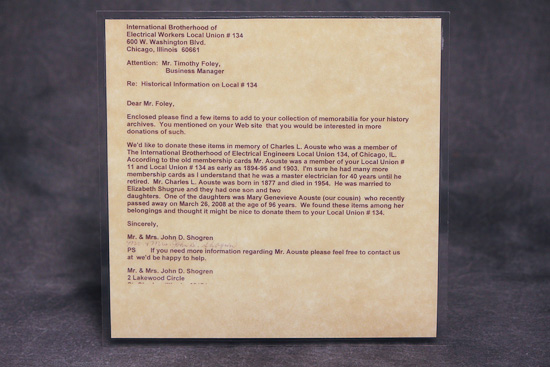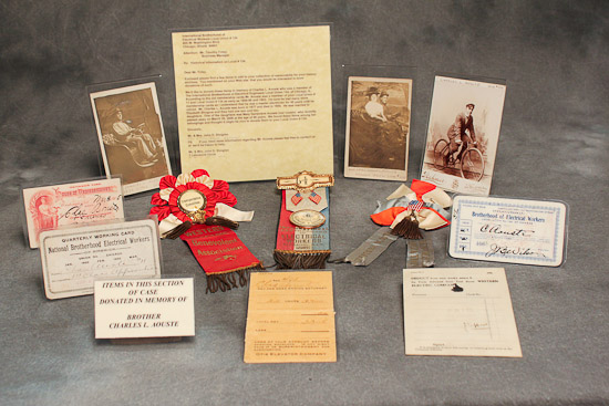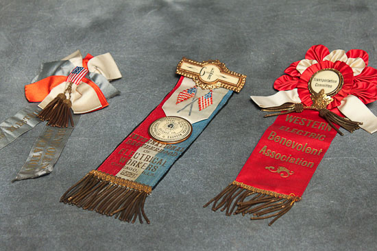 Description: Various ribbons (Western Electric Benevolent Association), Donated in memory of Brother Charles L. Aouste – Local 134 member and employee of Western Electric Company.