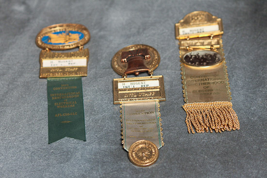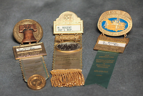 Description: Various Convention Ribbons by Michael D. Nugent, an IBEW Local 134 member and international business representative