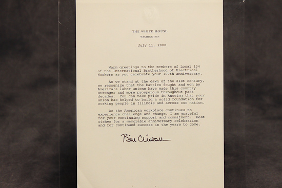 Description: Mike Fitzgerald and Mark Nemsheck 100 Year Anniversary memorabilia – letters from Past President of the USA Bill Clinton and Past Major of Chicago Richard M Daily