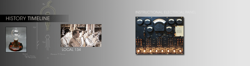 This instructional panel was originally installed in the Electric Shop at Lane Tech High School. Many young Chicagoans got their first introduction to the electric industry working on this panel. Click to Electrical Panel website page. Local 134 contractors, Dunning Electrical Services and the Sufranski family donated the panel to the Local 134 / NECA archives. Brother Steve Marasovich installed the panel in “2008”.