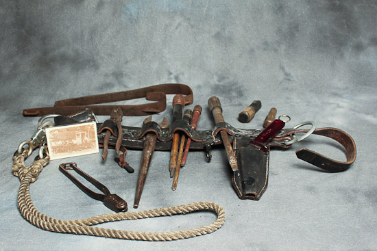 Description: Electrical lineman’s belt and tools